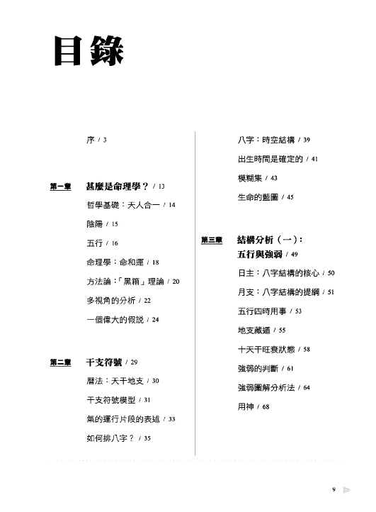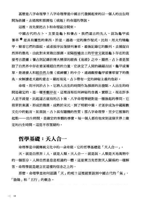 本书是八字命理学的一本入门教材。读者对象是对中国传统文化、尤其是对传统命理学有兴趣的人。整个教程分四个部分:第一部分是基本概念(第一、二章),让读者了解命理学是一门怎样的学问,以及它的基本研究方法。第二部分是静态分析(第三章至第八章)。它系统地阐述对八字结构如何做出多视角的分析。第三部分是动态分析(第九、十章)。这里引进大运和流年。通过分析八字结构与大运、流年的相互作用,了解八字命理学是如何分析人生的动态进程。第四部分是“走向实务”(第十一至十三章),阐述八字命理是如何通过不同的指称网络,去投射现实的人生百态,从而进行实际人生的描写、解释、以及做出预测。本书的结尾附有“八字结构分析图解流程”,将本教程对八字结构分析流程制成样式,供读者自己进行命理分析实践时做程式化分析的参考。